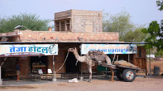 這唯一人口分佈較少的一段沙漠公路,騎乘時更加珍惜寧靜的分分秒秒。在安靜的公路上少了印度人的喇叭聲,晴空也顯得悠然。稀疏散布的茅屋小舍偎在公路兩旁,時而碰上駱駝貨車馳騁與共,心中十分明瞭越往前行人口將漸行漸繁,至少這個早晨是如此靜默地結束。